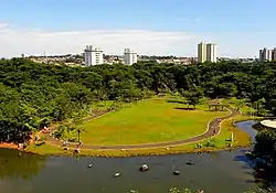 Dentre as áreas verdes, Ribeirão Preto possui diversas praças, além de alguns parques, como: Parque Prefeito Luiz Roberto Jábali, conhecido como "Curupira" (Zona Sul); Parque Ecológico Guarani (Zona Leste); Parque Luís Carlos Raya, conhecido como Parque do Jardim Botânico (Zona Sul); Parque Dr. Fernando de Freitas Monteiro da Silva (Zona Sul); Parque Jardim Nova Aliança (Zona Sul); Parque Roberto de Mello Genaro (Região Centro-Sul); Parque Francisco Prestes Maia (Região Centro-Oeste); Parque Ulysses Guimarães (Zona Norte); Parque São Bento (Zona Norte); Parque Tom Jobim (Zona Noroeste); Parque Ecológico Ângelo Rinaldi (Horto Municipal) (Zona Oeste); Parque Maurílio Biagi (Região Central); Parque Ecológico Santa Luzia (em implantação),[74] Parque Ecológico e Social Rubem Cione, maior parque em área do município totalizando 256.850 m² (Zona Oeste).[75]