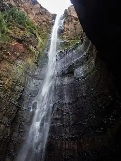 Na parte inferior da cascata a erosão erosiva, exercida pela pressão da água que cai que futuramente origina lagos.