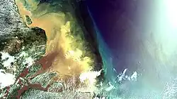 ![]() Imagem de satélite do Delta do Amazonas entre os estados do Pará e do Amapá na região norte do Brasil | |