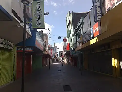 O Calçadão, principal rua comercial da cidade, porém em um domingo.