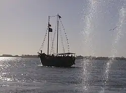 Uma escuna na Lagoa dos Patos, durante a feira municipal denominada Festa do Mar.
