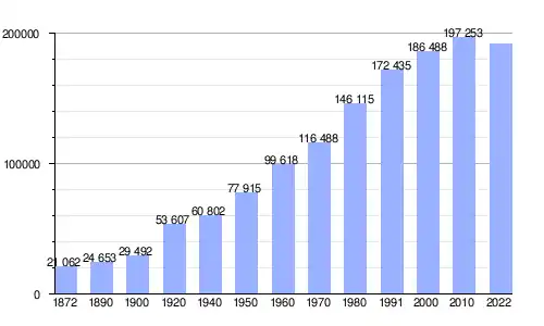 Variação demográfica do município entre 1872 e 2022
