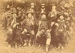 Aparício e Gumercindo Saraiva, chefes da Revolução Federalista, são vistos nesta foto, sentados, no meio