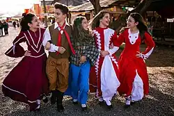 Os habitantes naturais do Rio Grande do Sul são denominados gaúchos, rio-grandenses-do-sul ou sul-rio-grandenses.[24] O gentílico no masculino do singular é gaúcho e no feminino, gaúcha.[25] É uma palavra oriunda do castelhano gaucho,[nota 1] um adjetivo que, aplicado às pessoas pode significar “nobre, valente e generosa” ou “camponês experimentado em pecuária tradicional”, ou ainda “velhaco, astuto, dissimulado ou ardiloso experiente”,[27] mas também podendo ter o sentido de “vagabundo, contrabandista, desregrado e desprivilegiado”.[28]