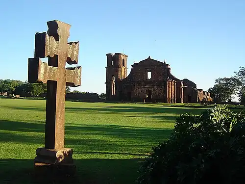 As ruínas jesuítas de São Miguel das Missões, localizadas na Região das Missões, no estado do Rio Grande do Sul. Foram declaradas Patrimônio da Humanidade pela UNESCO a partir de 1983