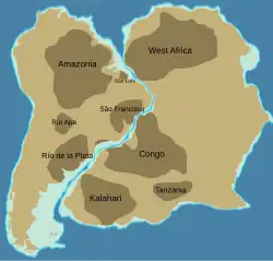 O Cráton do São Francisco, também chamado Cráton São Francisco-Congo, é um cráton situado na parte oriental da América do Sul. Aflora nos estados brasileiros de Minas Gerais, Bahia e Sergipe.[10] Em torno de 1,0 gigaannum atrás, ele estava localizado no sul do supercontinente Rodínia e depois da fragmentação deste no final do Proterozoico (700 megaannum) tornou-se parte do supercontinente Gonduana até sua fragmentação no Jurássico (cerca de 180 megaannum). A abertura posterior do Oceano Atlântico deixou o sul da África no Cráton do Congo e Cráton do São Francisco na América do Sul.