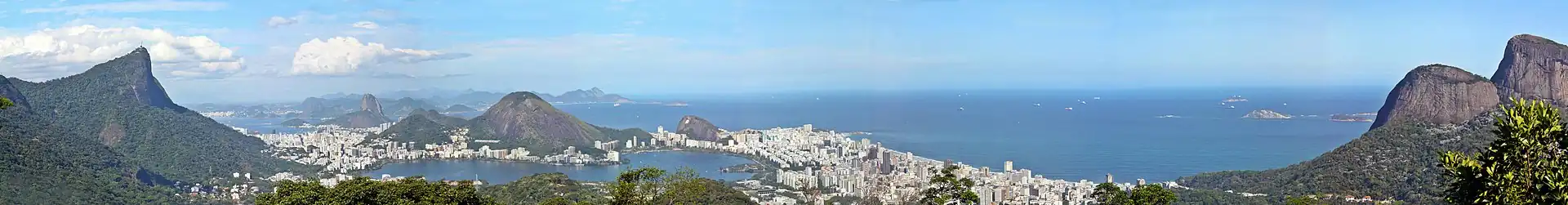 A cidade se desenvolveu sobre estreitas planícies aluviais comprimidas entre montanhas e morros[107] e está assentada sobre três grandes maciços:[107] Pedra Branca,[108] Gericinó e o da Tijuca,[109] com picos de interesse turístico como o Bico do Papagaio, Andaraí, Pedra da Gávea,[110] Corcovado, o Dois Irmãos e o Pão de Açúcar.[111] O Rio de Janeiro conta ainda com parques e reservas ecológicas, como o Parque Nacional da Tijuca, considerado "Patrimônio Ambiental e Reserva da Biosfera" pela UNESCO; o Complexo da Quinta da Boa Vista; o Jardim Botânico;[112] o Jardim Zoológico do Rio;[113] o Parque Estadual da Pedra Branca[108] e o Passeio Público.[114]