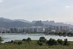 O litoral Atlântico expressa alternâncias consideráveis, apresentando-se ora alto, quando em contato com as ramificações costeiras dos maciços da Pedra Branca e da Tijuca, ora baixo, trecho pelo qual se estendem as praias integradas à paisagem urbana. Diversas lagoas, como as da Tijuca, Marapendi, Jacarepaguá e Rodrigo de Freitas formaram-se nas baixadas, muitas de terreno pantanoso a ainda não completamente drenado.[107]