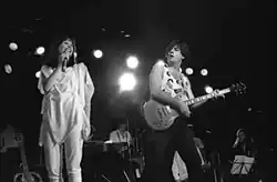 Em 1985, a dupla realizou duas apresentações avulsas: uma no Festival Internacional da Canção de Viña del Mar, no Chile, onde receberam a Tocha de Prata;[97] e outra na histórica primeira edição do Rock in Rio, na qual Lee aceitou participar apenas para desmentir boatos de que estaria com leucemia.[98] Essa apresentação foi marcada por polêmicas relacionadas ao tratamento diferenciado entre artistas estrangeiros e brasileiros — segundo a cantora, as atrações nacionais serviram como cobaias para testes de som e iluminação, sem oportunidade de ensaios adequados, o que ela interpretou como desrespeito aos pioneiros do rock brasileiro —,[99] além do roubo de sua guitarra Fender Telecaster durante o evento.[100] Lee criticou também a própria performance, atribuindo-a a uma ressaca após uma noite de comemoração com Carvalho no Copacabana Palace,[98] e recusou-se a participar do segundo fim de semana do festival.[99] Após o falecimento do pai e um período de dificuldades pessoais associadas ao consumo de álcool e drogas, Lee adotou um tom mais sombrio e cinematográfico no álbum Rita e Roberto, lançado em setembro de 1985.[96][93] Em vez de promover o novo lançamento com a gravação de um show para um especial televisivo, a cantora foi precursora no Brasil da ideia de álbuns integralmente acompanhados de vídeos musicais, exibidos no especial de fim de ano do disco para a TV Globo, nos quais interpretava personagens tragicômicos em uma superprodução narrativa.[101] Embora melhor recebido pela crítica em comparação a Bombom, o trabalho interrompeu a sequência de sucessos radiofônicos da dupla, vendendo pouco mais de 500 mil cópias — número inferior aos álbuns anteriores. Uma década depois, a faixa "Vítima" ganhou notoriedade ao servir como tema de abertura da telenovela A Próxima Vítima.[96][102]