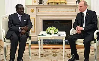 Robert Gabriel Mugabe (Salisbúria, 21 de fevereiro de 1924 – Singapura, 6 de setembro de 2019) foi um político que serviu como Presidente do Zimbabwe de 1987 a 2017. Teve um papel de liderança na Guerra Civil da Rodésia à frente da União Nacional Africana do Zimbábue,[1] comandando o país após a guerra, inicialmente como Primeiro-ministro, de 1980 a 1987, e depois como presidente com poderes executivos totais até novembro de 2017, quando foi derrubado por militares.[2][3][4]