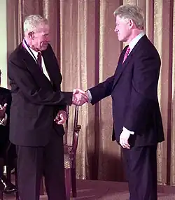 Bill Clinton laureando Robert Solow com a Medalha Nacional de Ciências de 1999