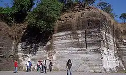 Paredão exibindo perfil de depósitos de varvito, no Parque do Varvito, em Itu,SP. Note a regularidade das estratificações.