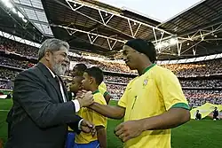 - ↑ «Ronaldinho finalmente explica gol contra Inglaterra: "Não era para a bola ir lá"». iG. 26 de março de 2018. Consultado em 23 de agosto de 2024