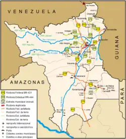 Estados limítrofes Venezuela (N[1] e NO), Guiana (L), Pará (SE) e Amazonas (S e O)