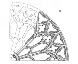 Trata-se de uma abertura circular onde um desenho geométrico de bandas de pedra (traceria) é preenchido com vidro colorido, vitral. As cores são fortes, acentuando o realismo da representação pela combinação de variados tons da mesma cor.