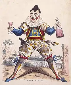 As primeiras pantomimas eram constituídas por mímicas acompanhadas por música, mas com a popularidade do Music Hall, Grimaldi introduziu uma "dama da pantomima" no teatro, que era responsável por iniciar a tradição de cantar para a plateia. Numa apresentação de dança e palhaçada em 1821, Grimaldi ficou fisicamente abalado, podendo apenas caminhar, sendo forçado a aposentar-se do teatro.[3] Em 1828, estando sem recursos, o Covent Garden realizou um concerto beneficente para auxiliá-lo.