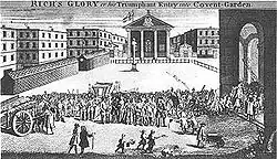 Em 1728, John Rich, ator e produtor da Duke's Company da Lincoln's Inn Fields Theatre, comissionou a The Beggar's Opera, de John Gay. O sucesso dessa empreitada lhe garantiu o capital necessário para a construção do Theatre Royal (projetado por Edward Shepherd) no local do antigo jardim do convento (covent garden), parte de onde, nos anos de 1630, Inigo Jones erguera uma praça e igreja. Além disso, uma Escritura Real (Royal Charter) havia ali estabelecido um mercado de frutas e vegetais, mercado este que sobreviveu até 1974. Sua inauguração deu-se a 7 de dezembro de 1732, quando Rich foi carregado por seus atores em cortejo triunfal até o interior, onde foi apresentada a produção The Way of the World, de William Congreve.[1]