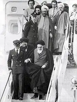 Em 1 de Fevereiro de 1979 Khomeini volta do seu exílio na França, e é acolhido no aeroporto por uma multidão de cerca de cinco milhões de pessoas.[13] Perguntado sobre o que sentia ao regressar, ficou célebre a sua respostaː "Nada".[14] Logo após a chegada, deslocou-se a um cemitério ao sul de Teerão, onde prestou homenagem aos mártires da revolução. Aí, no seu primeiro sermão após o regresso, depois dos habituais ataques ao Xá, prometeu nomear um novo governo, com o apoio do povo.