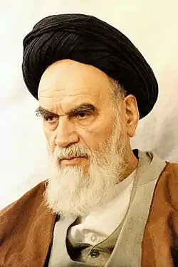 Ruhollah Musavi Khomeini (em persa روح الله موسوی خمینی, transl. Rūḥollāh Mūsavī Khomeynī, Khomein, 24 de setembro de 1902 - Teerã, 3 de junho de 1989) foi uma autoridade religiosa xiita iraniana, líder espiritual e político da Revolução Iraniana de 1979 que depôs Mohammad Reza Pahlavi, na altura o xá do Irã, e instaurou uma república islâmica. Governou o Irã desde a deposição do xá Reza Pahlavi até a sua morte em 1989. Costuma ser referido como Imã Khomeini dentro do Irã[1] e no mundo ocidental como Aiatolá Khomeini.[2]
