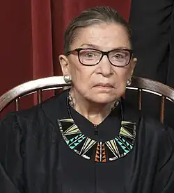 Ruth Bader Ginsburg ([ˈbeɪdər ˈɡɪnzbɜːrɡ]; nascida Joan Ruth Bader e também conhecida como RBG; Nova Iorque, 15 de março de 1933 – Washington, D.C., 18 de setembro de 2020) foi uma advogada e juíza norte-americana que serviu como juíza associada da Suprema Corte dos Estados Unidos de 1993 até sua morte. Foi indicada para o cargo pelo presidente Bill Clinton e empossada em 10 de agosto de 1993. Depois de Sandra Day O'Connor, foi a segunda mulher a ser confirmada pelo Senado para a Suprema Corte. Após a aposentadoria de O'Connor em 2006, e antes de a juíza Sonia Sotomayor se juntar ao tribunal em 2009, era a única mulher a atuar como juíza associada. Durante este período, tornou-se mais contundente em suas opiniões dissidentes. Era geralmente vista como pertencente à ala liberal da Corte.