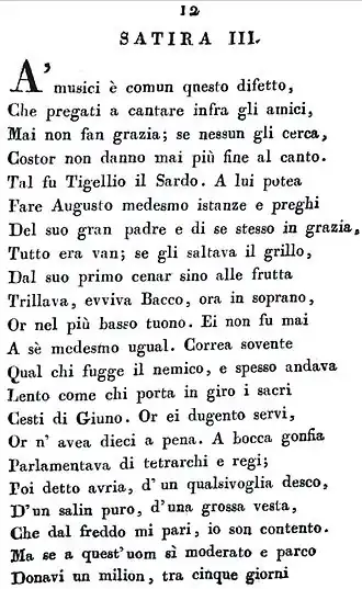 "Le e sátira l'epístola di Orazio Flacco Q.", impressa em 1814.