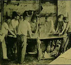 A actividade na região foi imortalizada pelo escritor João da Silva Correia, no seu romance "Unhas Negras".[12] Esta expressão pejorativa designava os operários da indústria dos chapéus que, em virtude do árduo trabalho em caldeiras de vapores designadas de fulas, ficavam com as unhas deterioradas e tingidas de preto. O termo acabaria por se generalizar, servindo para designar, durante muito tempo, todos os habitantes de São João da Madeira. A palavra Labor, no escudo da cidade, pretende significar precisamente que foi à custa do trabalho dos seus "Unhas Negras" que a cidade se desenvolveu e emancipou.[13] A actividade da chapelaria viria, no entanto, a decair nas décadas seguintes, com o desuso deste utensílio têxtil por parte da população. Paralelamente, a indústria do calçado foi crescendo, acabando por se tornar a principal actividade económica da cidade e tornando São João da Madeira conhecida como a "Capital do Calçado".