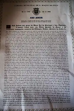 - ↑ Idalmiro Ferreira. Esta terra, esta gente. São Roque do Pico: Câmara Municipal de São Roque do Pico, 1992. p. 24