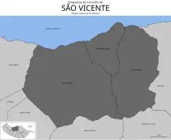 O Município de São Vicente está subdividido em três freguesias, sendo limitado a leste pelo município de Santana, a sul por Câmara de Lobos, Ribeira Brava, Calheta e Ponta do Sol, a oeste pelo Porto Moniz e a norte tem litoral no oceano Atlântico.