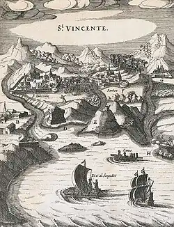 Em dezembro de 1591, a São Vicente foi saqueada pelo pirata inglês Thomas Cavendish, que retornava de um ataque a Santos. Ele e seus homens roubaram e atearam fogo em diversas partes da Vila, causando enormes prejuízos. O pirata fugiu, mas um temporal o impediu de seguir viagem, ele retornou e tentou uma nova investida, porém, desta vez, a população das duas vilas estava preparada e Cavendish foi repelido.[38]
