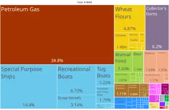 Principais produtos de exportação de São Vicente e Granadinas em 2019 (em inglês).