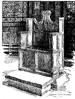 A palavra trono também é usada, especialmente na Igreja Ortodoxa, tanto para a cadeira quanto para a área de jurisdição eclesiástica.[14][nt 3][15][nt 4]