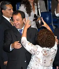 Sérgio de Oliveira Cabral Santos Filho GCIH • ComMM (Rio de Janeiro, 27 de janeiro de 1963) é um jornalista e político brasileiro, ex-membro do Movimento Democrático Brasileiro (MDB). Foi deputado estadual por três mandatos, de 1991 a 2003,[6] e senador de 2003 até 2006.[7] Posteriormente foi governador do Rio de Janeiro, com mandato de 1 de janeiro de 2007 até 3 de abril de 2014, quando renunciou ao cargo.[8] Foi considerado pela Revista Época um dos 100 brasileiros mais influentes de 2009.[9]