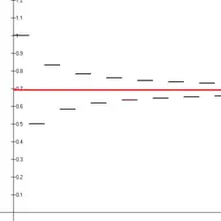 Esta função é próxima de para valores entre e , com até a décima casa decimal. Ela decresce assintoticamente como uma distribuição normal para valores maiores que ou menores que . Intermediário a essas faixas, nos valores , a densidade de probabilidade é para um valor não nulo, mas muito pequeno .