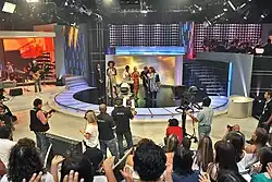 Sistema Brasileiro de Televisão (SBT) é uma rede de televisão comercial aberta brasileira fundada em 19 de agosto de 1981 por Silvio Santos.[8][9] A emissora surgiu após uma concorrência pública feita pelo Governo Federal para a criação de duas novas redes de televisão, após a cassação de algumas concessões da extinta Rede Tupi.[nota 4] A rede foi fundada no mesmo dia em que o contrato de concessão foi assinado, sendo que o ato foi transmitido ao vivo pela emissora, fazendo com que esse fosse o seu primeiro programa exibido.[11][12] Antes de adquirir as concessões das três emissoras que formariam o SBT, o Grupo Silvio Santos já tinha desde 1976 a concessão do canal 11 do Rio de Janeiro, conhecido como TVS, o que foi um passo fundamental para dar vida ao SBT.[13][14] Além do SBT, o Grupo Silvio Santos também é formado por outras empresas de grande sucesso como SBT News (canal de notícias e portal), SBT Filmes (empresa cinematográfica), SBT Music (gravadora musical), +SBT (serviço gratuito de streaming), SBT Licensing (licenciadora de marcas), Liderança Capitalização (responsável pela emissão do título de capitalização conhecido como Tele Sena), Jequiti Cosméticos (empresa de cosméticos), Hotel Jequitimar (hotelaria), entre outras.