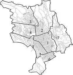 Sabadell é dividida em sete distritos, ordenados por número. O Primeiro Distrito é a região mais populosa, em contrapartida, a área com menor população é o Sétimo Distrito.