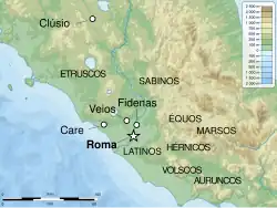 - ↑ Cfr. Dionísio de Halicarnasso II, 38, 24 e Estrabo, Geografica V, 3,1