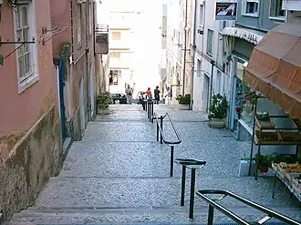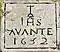 | Lápide no percurso da Rua Almirante Reis, com a inscrição epigráfica: † IĤS AVANTE 1652 |