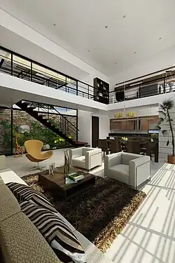 - 1 2 3 4 5 6 ORTENZIO, Candy (21 de Maio de 2019). «The Evolution of the Living Room and Family Room» (em inglês). Brownstone Real Estate. Consultado em 26 de Março de 2022