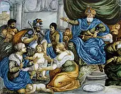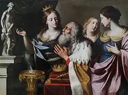A descida de Salomão à idolatria, Willem de Poorter, Rijksmuseum. O pecado de Salomão teria sido iniciado por adquirir mulheres estrangeiras.