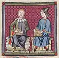 A partir da segunda metade do século XIV as cordas passaram a ser percutidas com pequenos martelos, e o instrumento era pousado sobre uma mesa. Na mesma época apareceu o eschiquier — um saltério munido de teclado, e as teclas acionavam pequenos martelos. Mencionado por Guillaume de Machaut antes de 1377, o eschiquier foi muito difundido na França, na Inglaterra e na Espanha até o século XVI e parece ser o mais antigo antepassado do piano. A partir do século XV, uma grande variedade de instrumentos derivados do saltério de cordas percutidas espalhou-se pela Europa sob a denominação de tympanon (muitas vezes tomado como termo genérico), doucemère, doucemelle, doulcimer, cymbalum, etc. Em alguns, utilizavam-se varetas com a extremidade em forma de colher com as quais se percutiam as cordas como fazem os músicos atuais usando palhetas; outros eram dotados de teclado.[4]