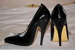 - Este artigo foi inicialmente traduzido, total ou parcialmente, do artigo da Wikipédia em inglês cujo título é «High-heeled footwear», especificamente desta versão.