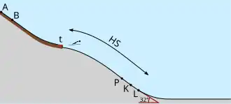 A estrutura da pista é composta por um plano inclinado que compreende os possíveis pontos de onde os saltadores largarão (a escolha do local exato da largada é feita pelos árbitros antes do início da competição), uma curva cuja angulação diminui à medida que o ponto final se aproxima e a zona de decolagem, outro plano inclinado. A colina tem início logo abaixo da zona de decolagem e se estende até a área de pouso, na qual está localizado o K-point.[5]