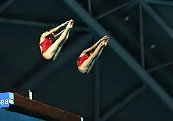 Nas provas sincronizadas, a China é a nação destacada. Em três edições realizadas desde 2000, foi vencedora em quatro provas masculinas, entre a plataforma e o trampolim, e cinco vezes em provas femininas, tendo na plataforma, a hegemonia dos primeiros saltos sincronizados olímpicos, entre os anos 2000 e 2008.[41][42][43][44]