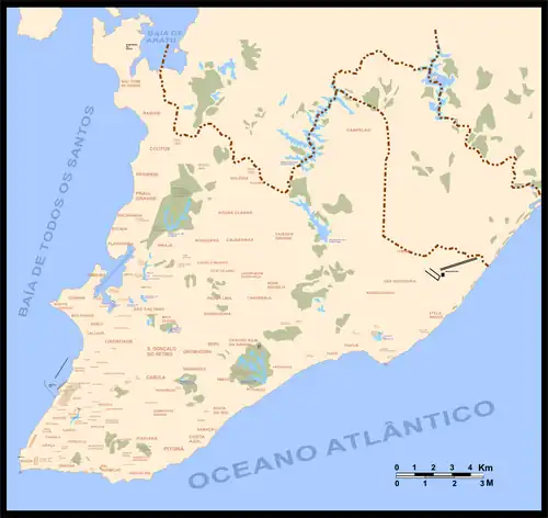 Municípios limítrofesLauro de Freitas, Simões Filho, Candeias, Madre de Deus, Salinas da Margarida, Saubara, São Francisco do Conde e Ilha de Itaparica (Itaparica e Vera Cruz)