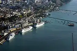 Centro econômico do estado, Salvador é também cidade portuária, centro administrativo e turístico.[48] Sua região metropolitana possui o maior produto interno bruto (PIB) entre as concentrações urbanas do Nordeste.[49] Em 2021, tinha o segundo maior PIB municipal do Nordeste e o 14º maior do país.[10] Ademais, é sede de importantes empresas regionais, nacionais e internacionais, a exemplo da Organização Odebrecht (atual Novonor),[50] Braskem, Coelba, Suzano.[51] Além de empresas, a cidade sedia ou sediou também muitos eventos e organizações culturais, políticas, educacionais, esportivas, como a Universidade do Estado da Bahia, a Universidade Federal da Bahia, a Escola de Saúde e Formação Complementar do Exército Brasileiro,[52] a Confederação Brasileira de Surf,[53] a Associação Nacional das Baianas de Acarajé, Mingau, Receptivo e Similares,[54] o 12.º Congresso das Nações Unidas sobre Prevenção ao Crime e Justiça Criminal (em 2010),[55] III Conferência Ibero-americana (em 1993),[56] o Campeonato Pan-americano de Judô de 2003,[57][58] a II Conferência de Intelectuais da África e da Diáspora (em 2006),[59] a Copa América de 1989,[60] a Copa das Confederações FIFA de 2013, a Copa do Mundo FIFA de 2014 e o futebol dos Jogos Olímpicos de Verão de 2016.[61] Salvador é sede, ainda, do Consórcio Nordeste[62] e abriga o único escritório da Agência Nacional de Petróleo na região Nordeste do Brasil.[63]