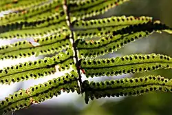 - soros que são conjuntos de esporângios, normalmente na página abaxial das frondes - estas, também chamadas folhas ou frondes férteis, podem ser diferentes das folhas vegetativas;