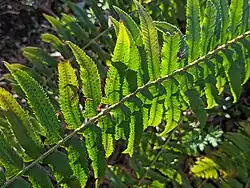 - A lâmina, ou seja, a parte verde da folha, que é muitas vezes composta em pinas ou recomposta em pínulas; o eixo da folha composta tem o nome de raque ou ráquis;