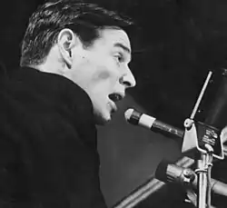 Em um momento em que o apelo ao tradicional ganhava um novo impulso, a bossa nova marcaria toda a estrutura de criação e audição apoiada nos gêneros estabelecidos, tendo em vista que buscava uma renovação dentro da tradição do samba.[258] Inicialmente chamado de “samba moderno” pela crítica musical nacional,[299] essa nova vertente foi inaugurada oficialmente com a composição “Chega de Saudade”, de Tom Jobim e Vinicius de Moraes, lançada em 1958 em duas versões: uma interpretada por Elizeth Cardoso[300][301] e outra com o cantor e violonista João Gilberto.[302][303] Baiano radicado no Rio, João Gilberto mudou radicalmente a forma de interpretar o samba até então, modificando as harmonias com a introdução de acordes de violão não convencionais e revolucionando a síncope clássica do gênero com uma divisão rítmica única.[297] Essas experiências formais gilbertianas foram consolidadas no LP Chega de Saudade, lançado em 1959,[301] e desencadearam o surgimento de um movimento artístico em torno de João Gilberto com artistas profissionais como Tom Jobim, Vinicius de Moraes, Baden Powell, Alaíde Costa, Sylvia Telles, entre outros, que atraiu jovens músicos amadores da zona sul carioca – quase todos oriundos da classe média e com formação universitária[297] – como Carlos Lyra, Roberto Menescal, Ronaldo Boscoli.[302][304]