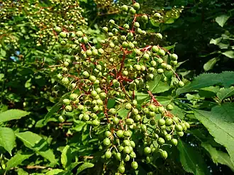 ![]() Frutos maduros de Sambucus nigra. | |||||||||||||||||