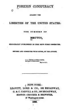 • Samuel F. B. Morse, Foreign Conspiracy Against the Liberties of the United States: The Numbers Under the Signature (Harvard University Press 1835, 1855)